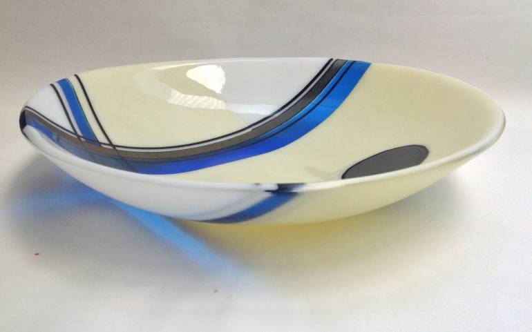 WHIPPED CREAM* (2016) by Robyn Douglas Fused and slumped glass 300mm diam On show at ArtsPost Gallery, Hamilton